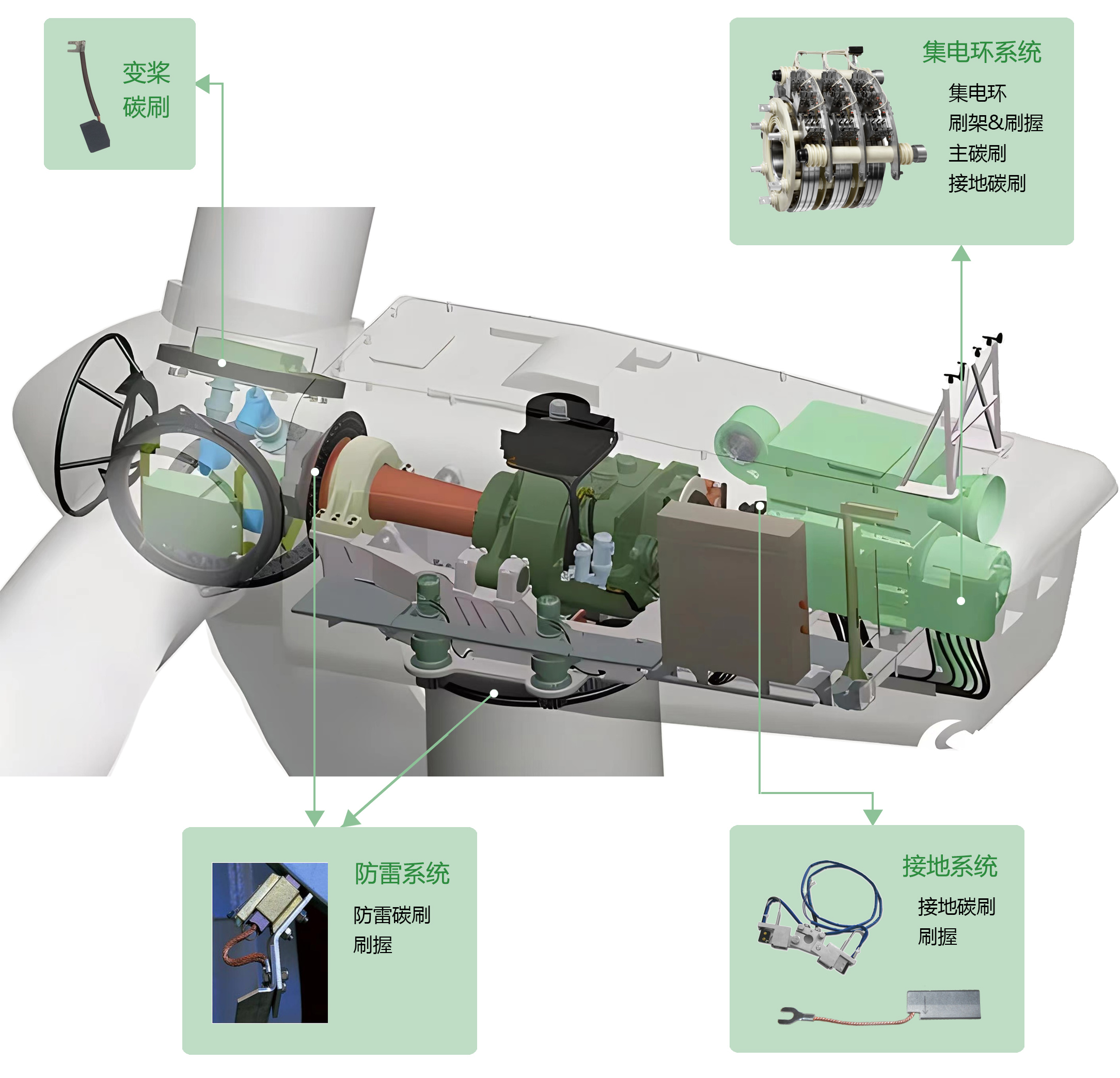 發(fā)電機是每個風(fēng)電設(shè)備的核心部件,所以它必須具備卓越的品質(zhì)、性能和可靠性。曼瑞業(yè)卓的碳技術(shù)解決方案可實現(xiàn)高效的電流傳輸技術(shù)并安全地消散干擾電流。